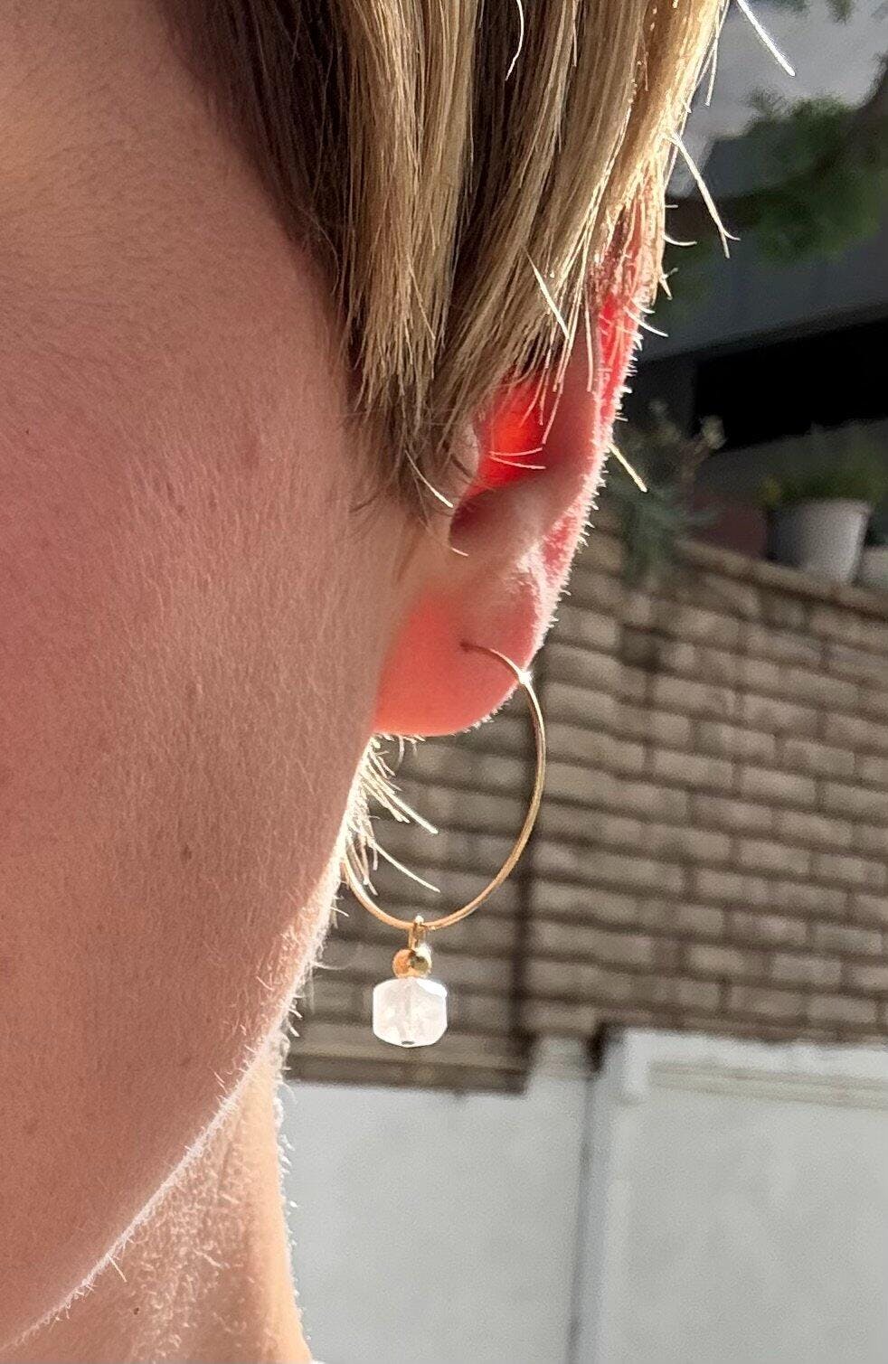 With their light, airy design and understated charm, the Blush Glow hoops are perfect for any occasion — from casual coffee dates to evenings out. Rose quartz, known for its calming and nurturing energy, brings a quiet sense of serenity to your look.