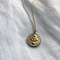 Protect your energy and invite positivity with the Evil Eye necklace. With a gold-plated pendant engraved with a shimmering evil eye and delicately carved stars, this piece is a symbol of strength and protection. Its versatile design makes it ideal for layering or wearing as a subtle statement.