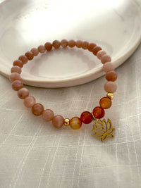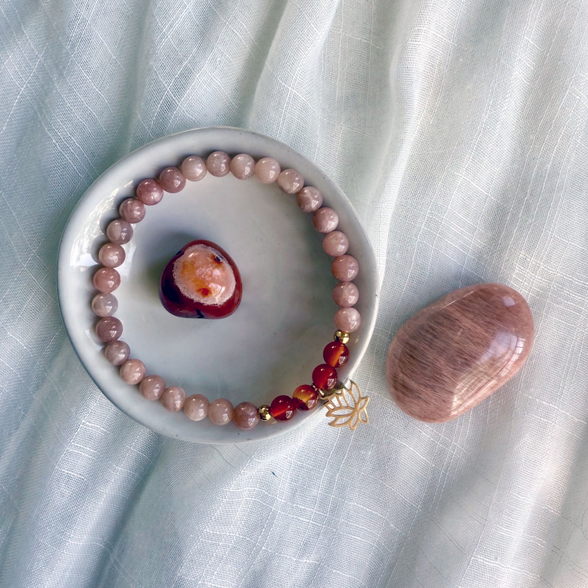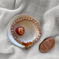 Introducing "I Feel Passion & Joy" – a mesmerizing bracelet from our Chakra Collection designed for the Svadhisthana Chakra. Crafted with the harmonious energies of Moonstone and Carnelian, this bracelet radiates a vibrant blend of passion and joy. Moonstone, with its calming luminescence, complements Carnelian's fiery energy to awaken the Svadhisthana chakra, associated with creativity and emotional balance. Wear this bracelet as a daily reminder to embrace life's passions, finding joy in every moment.